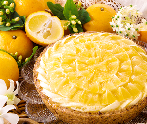 柑橘とマンゴーの甘酸っぱいレアチーズタルト