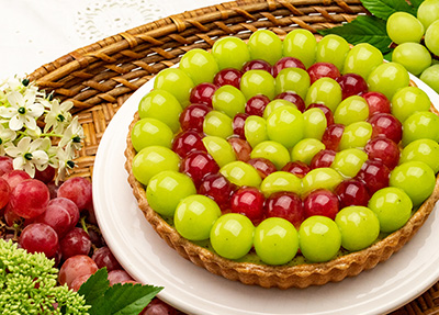 colorful cakes decorated with plentiful fruits.Welcome to our joyful cake shop symbolizing